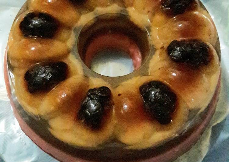 - Selanjutnya sisa agar plain tadi, panaskan kembali dg api sedang, masukan 1 bungkus white coffee caramel, aduk2 hingga mendidih, kemudian tuang/tumpuk di atas puding pertama tadi. Diamkan beberapa saat sampai puding agak mengeras.